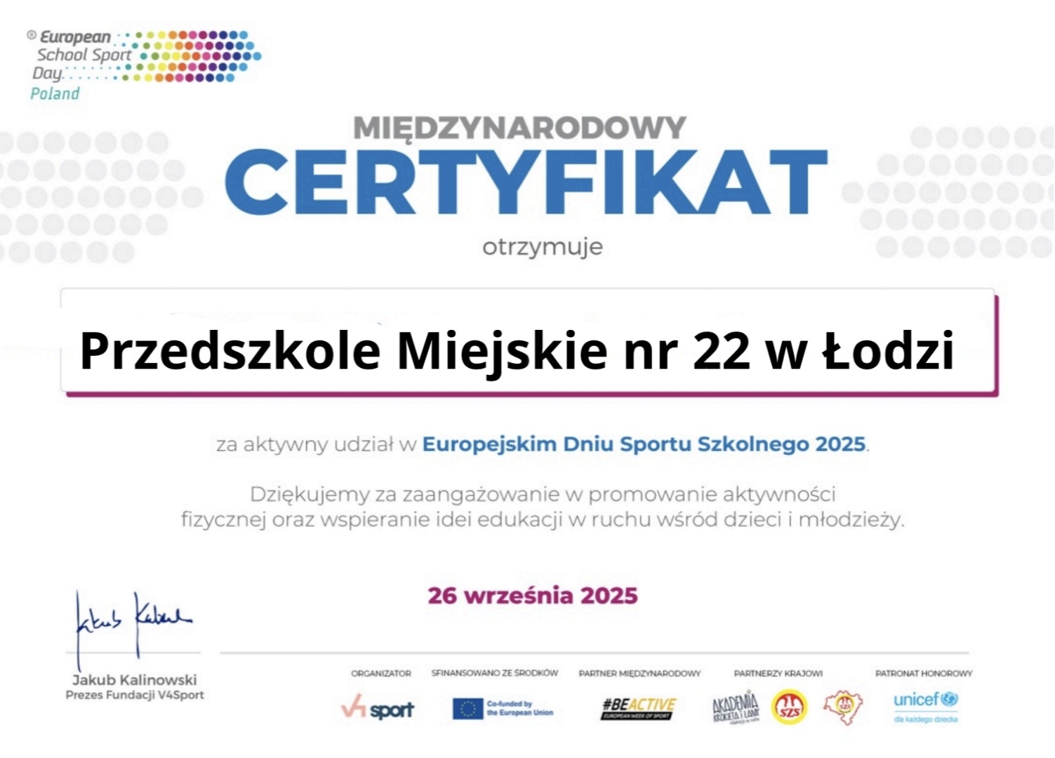 Dzięki zaangażowaniu i pracy nauczycielek nasza placówka otrzymuje certyfikaty, dyplomy i podziękowania: