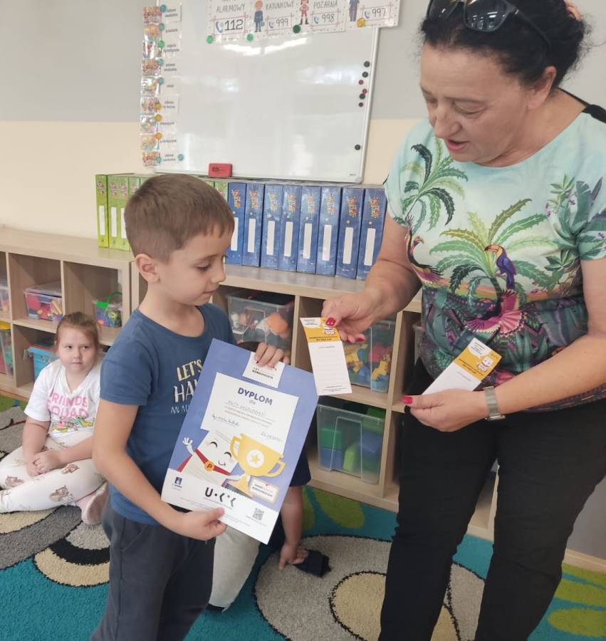 W grupie Zwinne Koty odbyły się warsztaty na temat praw konsumenta. Dzieci dowiedziały się, jak można rozpoznać produkt wysokiej jakości oraz jak jest oznakowany. Wszyscy z ciekawoscią i zainteresowaniem wysłuchali naszego gościa.
