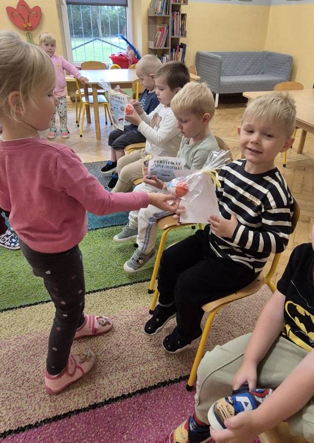 We wrześniu w naszych Dwójeczkach obchodziliśmy Dzień Chłopca.Były życzenia, drobne upominki i wesołe zabawy. Dziewczynki złożyły chłopcom życzenia, a wszyscy razem spędzili czas w miłej i radosnej atmosferze.