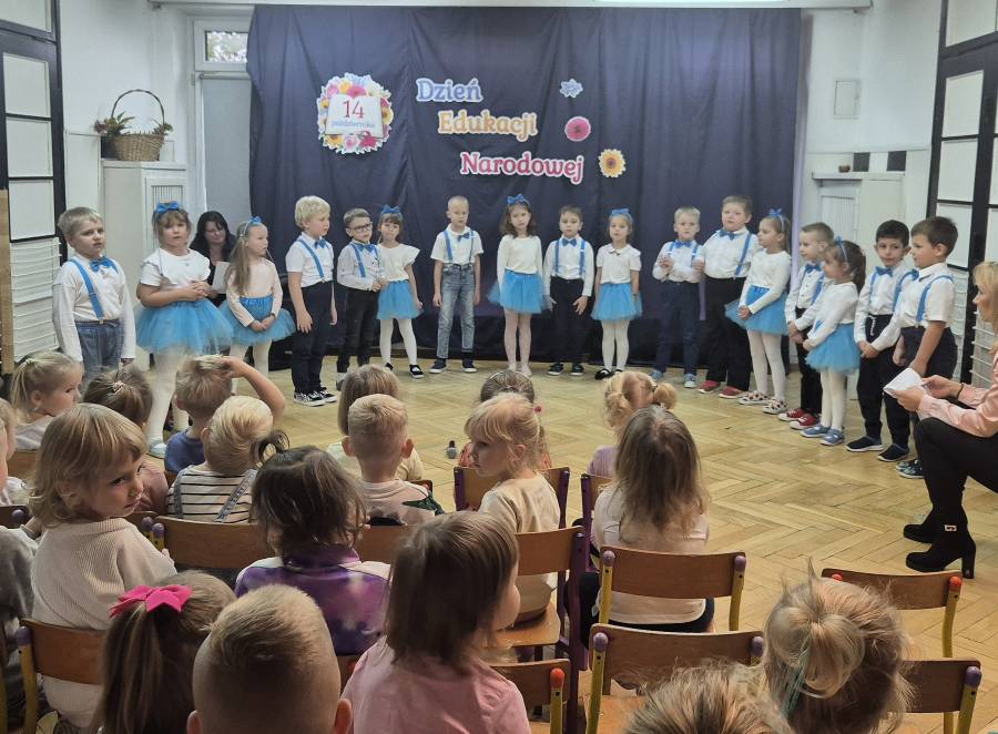 W naszym przedszkolu odbył się uroczysty występ z okazji Dnia Edukacji Narodowej. Zwinne Koty zaprezentowały piosenki i wiersze przygotowane specjalnie na tę wyjątkową okazję. Swoimi występami przedszkolaki wyraziły wdzięczność wszystkim nauczycielom i pracownikom przedszkola za codzienną pracę, troskę, cierpliwość i serce, jakie wkładają w wychowanie najmłodszych. Na twarzach dzieci widać było ogromną radość i dumę, a w oczach dorosłych ? wzruszenie. To był piękny, pełen emocji dzień, który na długo pozostanie w naszej pamięci.