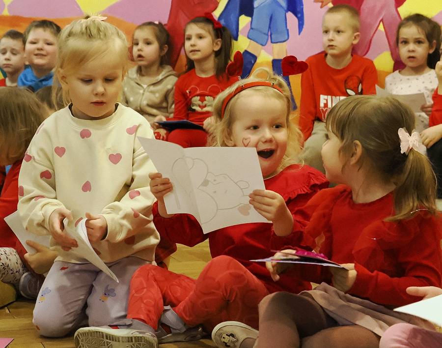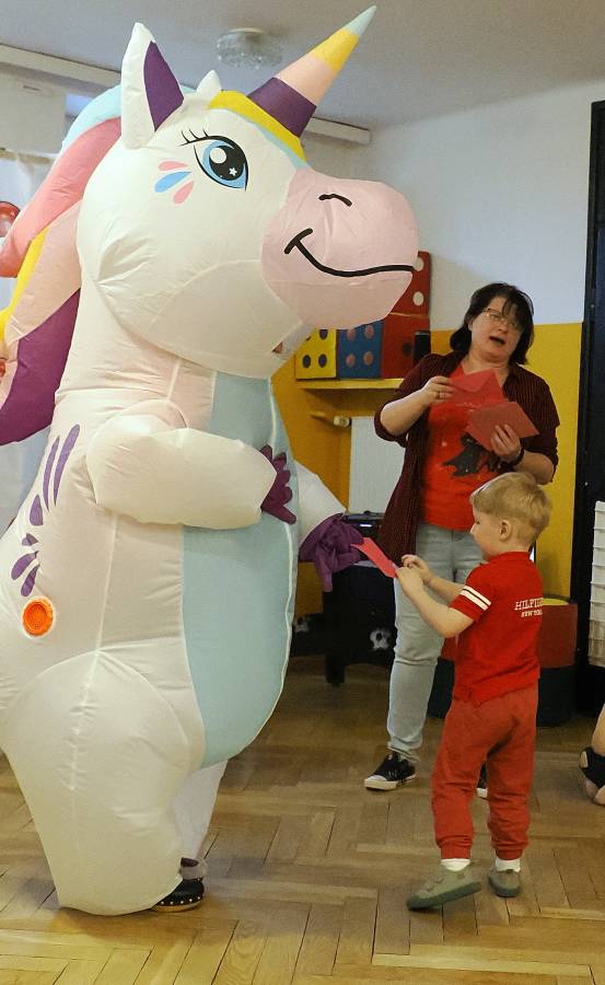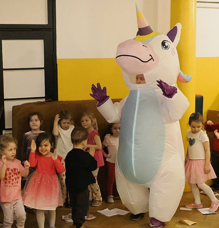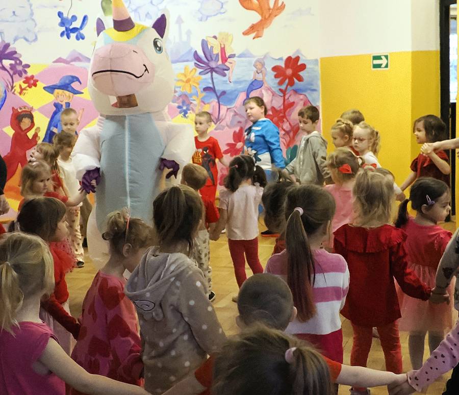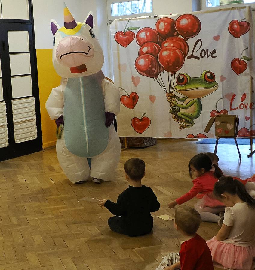 W naszym przedszkolu świętowaliśmy Walentynki! Przedszkolna Poczta Walentynkowa sprawiła dzieciom mnóstwo radości. Wyjątkową korespondencję dostarczył do nas specjalny gość ? wesoły jednorożec, który bawiąc się z przedszkolakami, rozdawał piękne kartki z wyrazami przyjaźni i miłości.