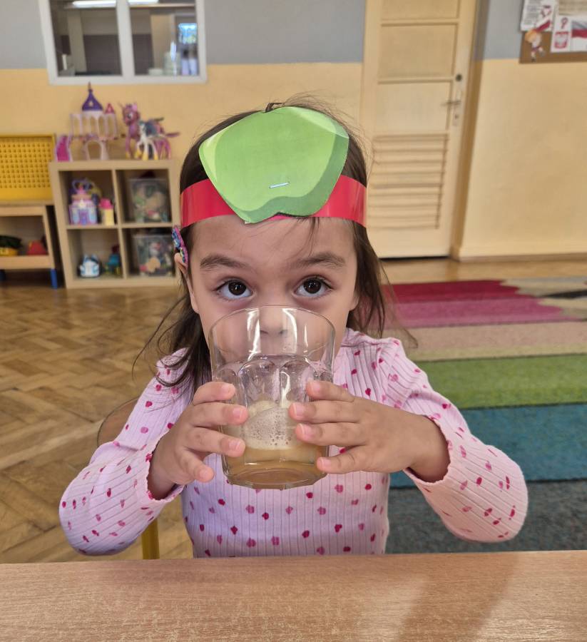 Dzisiejszy dzień był pełen zdrowych smaków. Kumate Żaby poznały różne odmiany jabłek, dowiedziały się, dlaczego warto je jeść oraz samodzielnie przygotowały pyszny sok jabłkowy. Degustacja była prawdziwą ucztą.